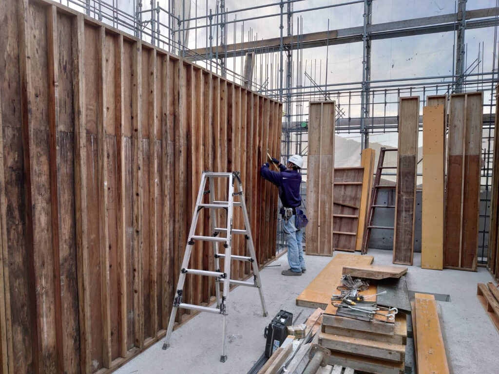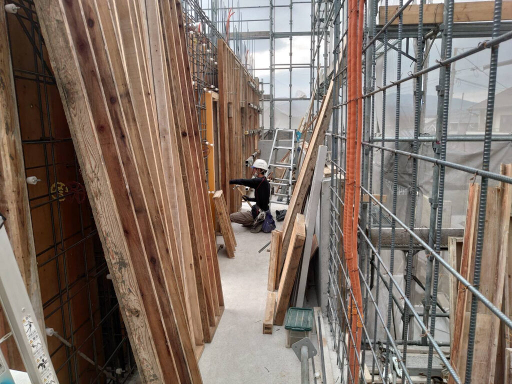 window.dataLayer = window.dataLayer || []; function gtag(){dataLayer.push(arguments);} gtag('js', new Date()); gtag('config', 'G-JXH3ZZWFLL'); window.dataLayer = window.dataLayer || []; function gtag(){dataLayer.push(arguments);} gtag('js', new Date()); gtag('config', 'UA-197752515-1'); 熊本市 清水万石集合住宅、2階建込み、三日目 | 有限会社有働建設工業