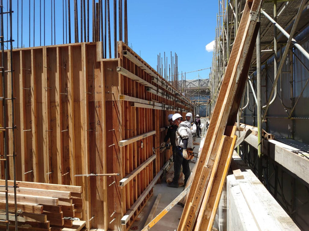 window.dataLayer = window.dataLayer || []; function gtag(){dataLayer.push(arguments);} gtag('js', new Date()); gtag('config', 'G-JXH3ZZWFLL'); window.dataLayer = window.dataLayer || []; function gtag(){dataLayer.push(arguments);} gtag('js', new Date()); gtag('config', 'UA-197752515-1'); 大津町 9階建てマンション 4階壁建込み状況 | 有限会社有働建設工業