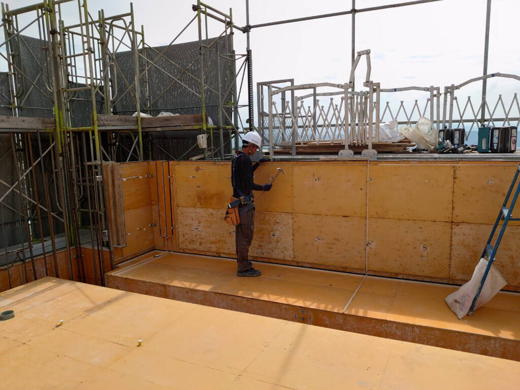 window.dataLayer = window.dataLayer || []; function gtag(){dataLayer.push(arguments);} gtag('js', new Date()); gtag('config', 'G-JXH3ZZWFLL'); window.dataLayer = window.dataLayer || []; function gtag(){dataLayer.push(arguments);} gtag('js', new Date()); gtag('config', 'UA-197752515-1'); 大津町 9階建てマンション 8階手すり建込み状況 | 有限会社有働建設工業