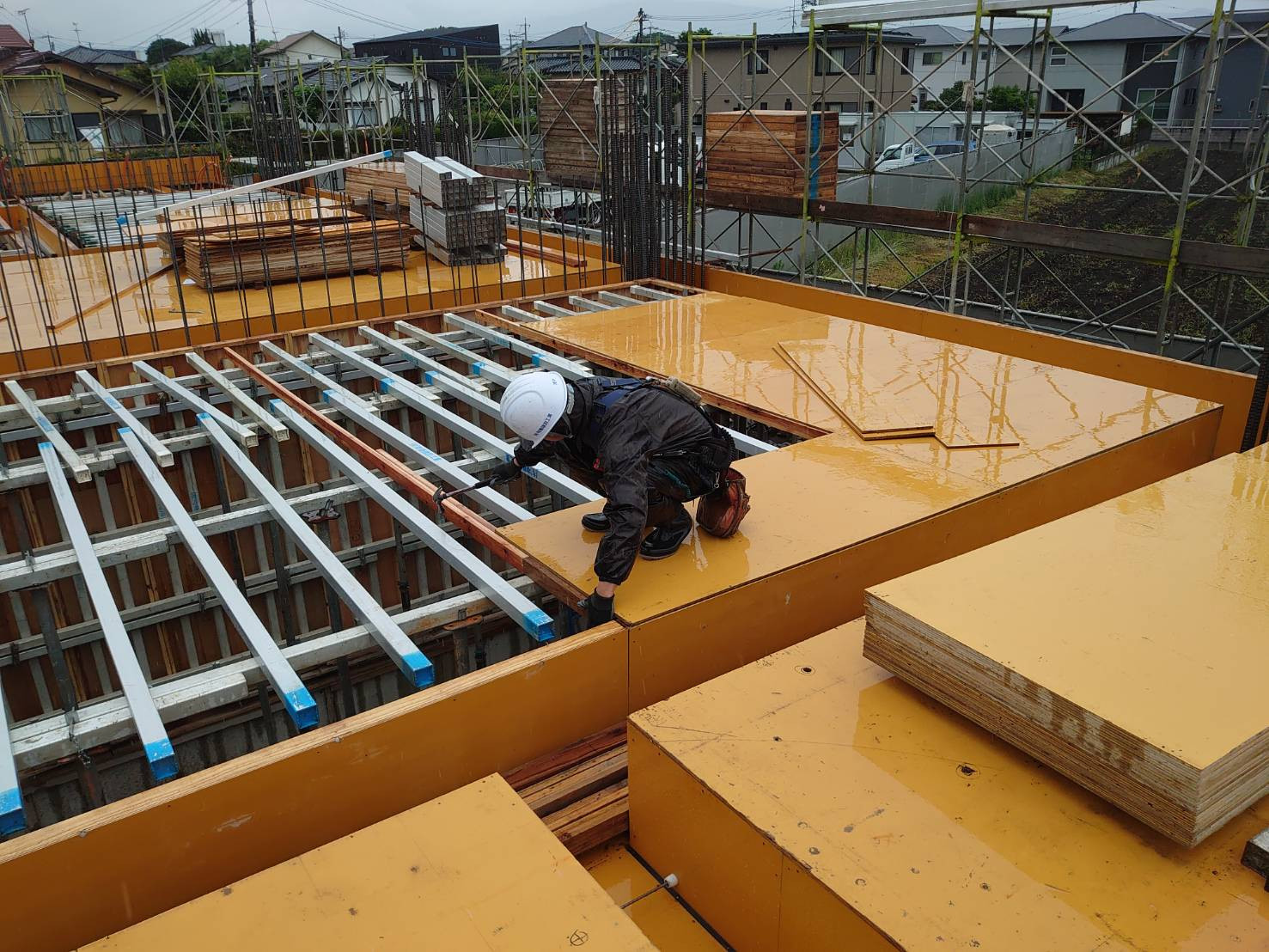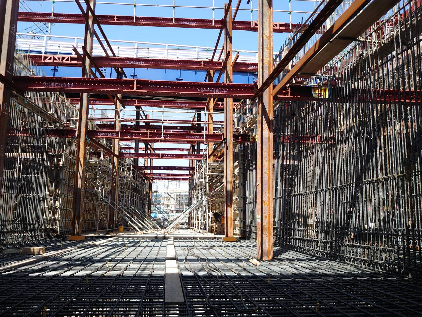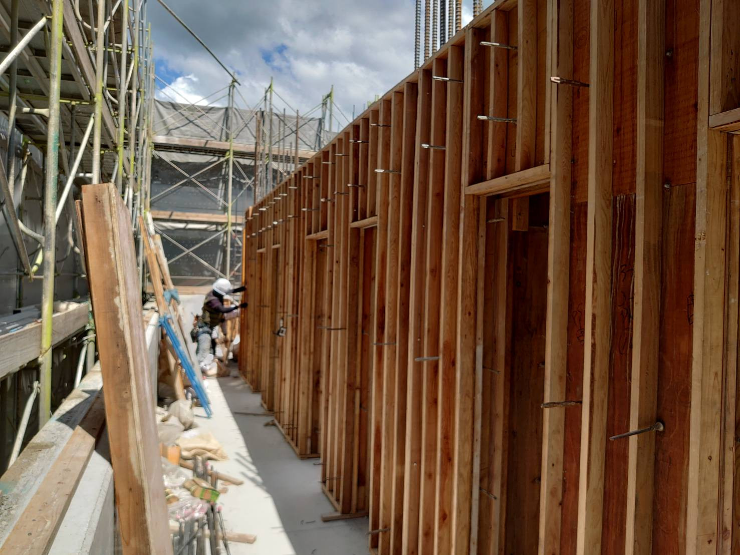 大津町 9階建てマンション 7階壁建込み状況